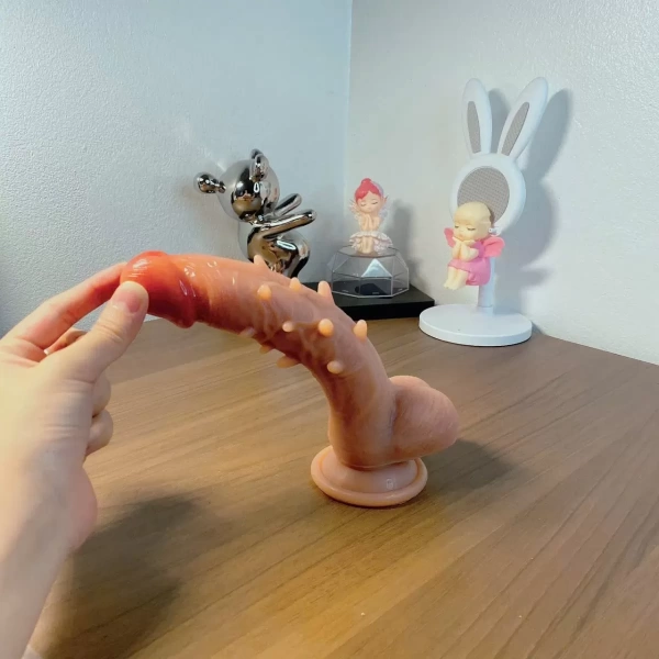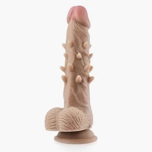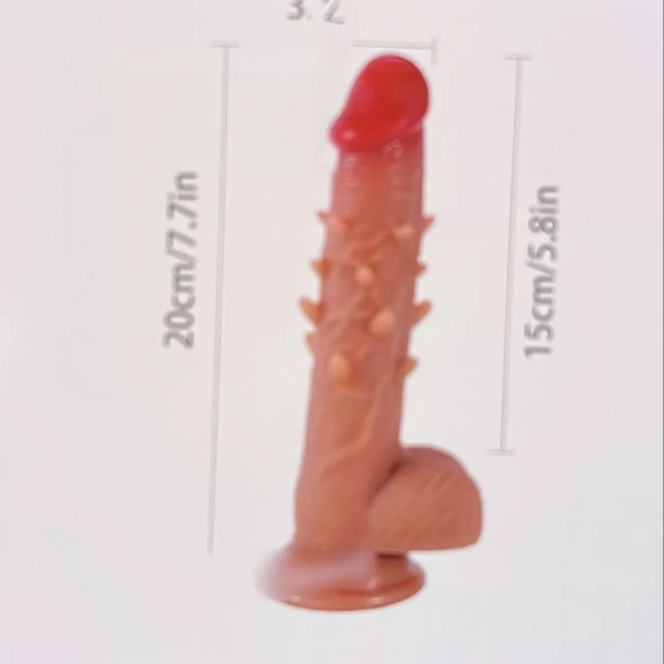 Bề mặt thân dương vật có nhiều gân đặc biệt là những chiếc gai nổi dài mềm mại tăng thêm sự kích thích mọi điểm G trong âm đạo. Sextoys cu giả có đế dán tường cực kì chắc chắn giúp nàng có thể thoải mái quan hệ, tạo được nhiều tư thế thủ dâm khác nhau, ngoài ra cũng có thể cầm tay thủ dâm theo kiểu truyền thống đều được. Đế có thể hít chặt vào tường, gạch men, mặt kính hoặc gỗ bóng...