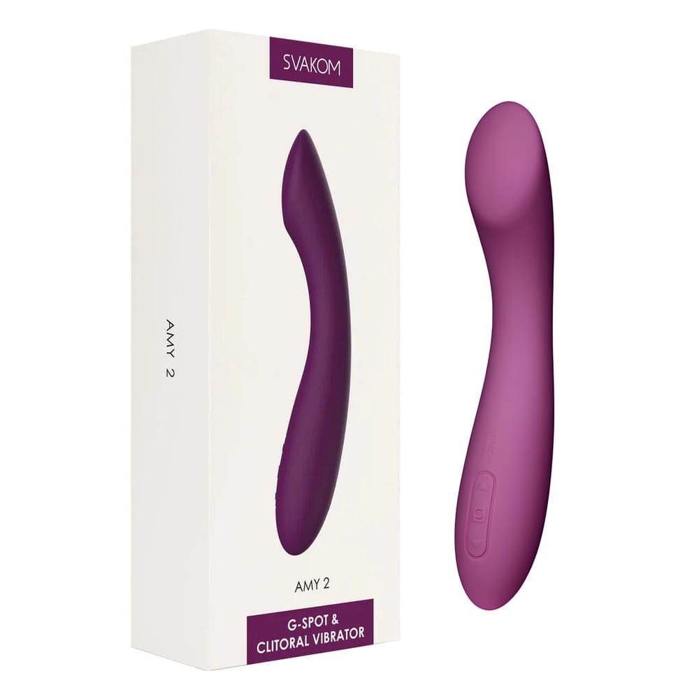 Máy massage điểm G Svakom Amy 2 với 7 chế độ rung khác nhau cùng 6 cường độ rung Svakom Amy2 sẽ đáp ứng mọi nhu cầu của bạn, mang tới nhiều trải nghiệm mới lạ và thú vị. Svakom Amy 2 thiết kế hình dáng hơi cong có thể chạm tới mọi ngóc ngách trong âm đạo chị em. Sextoy không chỉ giúp nữ giới giải tỏa nhu cầu sinh lý mà còn hỗ trợ quý ông kích thích bạn tình trong màn dạo đầu.