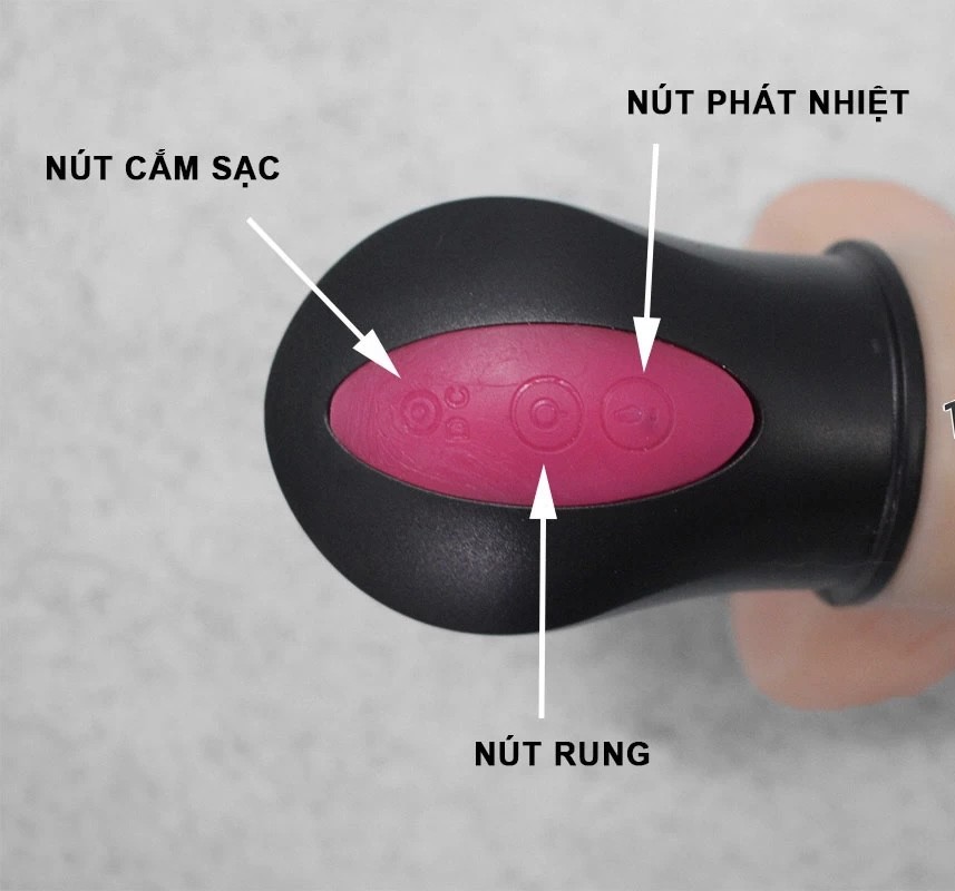 -Nhấn nút O để bật/tắt nguồn và điều chỉnh chế độ rung theo ý thích, nhấn nút trên cùng biểu tượng chấm than để bật chế độ phát nhiệt ấm nóng.