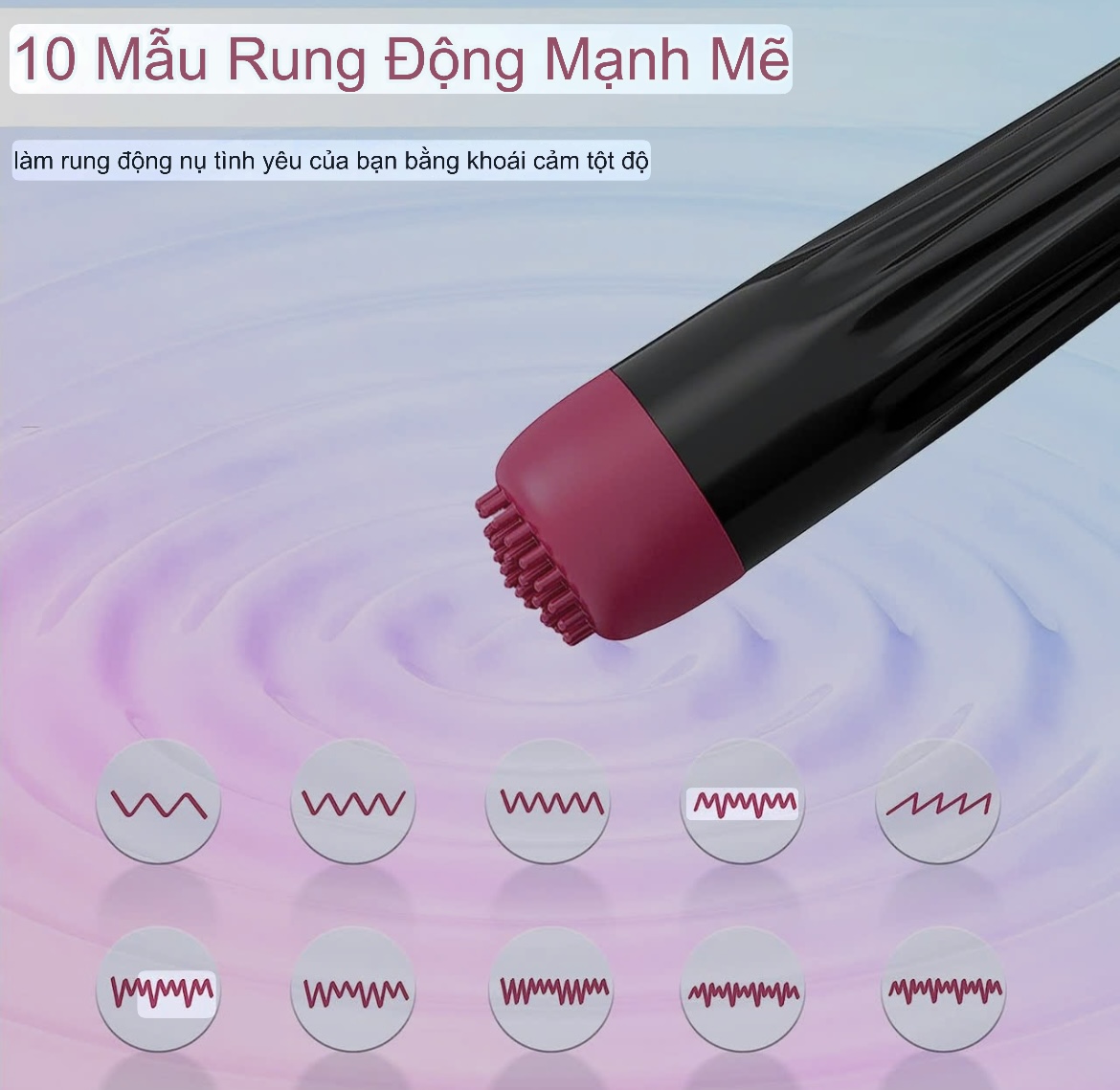 Bên cạnh đó sự nổi bật lại nằm ở phía sức mạnh rung của sản phẩm tuy nhỏ nhưng lại được trang bị động cơ rung tần số cao với 10 chế độ rung cho bạn thoải mái lựa chọn. Ngoài ra khi kết hợp với những đầu rung khác nhau sẽ là một kết hợp đem lại nhiều cảm giác mới lạ và thích thú cho người sử dụng.