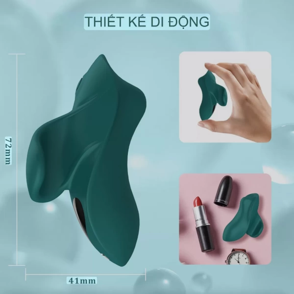 Với thiết kế của một chú bướm đang bay lượn và có hai chiếc cánh xinh dùng để kẹp ngón tay vào để có thể massage những nơi là người dùng muốn kích thích. Sản phẩm được phủ một lớp silicon mềm mịn ở mọi nơi và có một phần nhựa đen được làm ở phần dưới của sản phẩm tạo cảm giác cứng cáp và sản phẩm được trang bị cổng sạc hút nam châm vô cùng nhẹ nhàng và gọn lẹ.