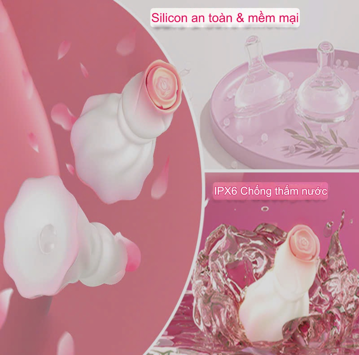- Chất liệu: silicon y tế mềm mịn
