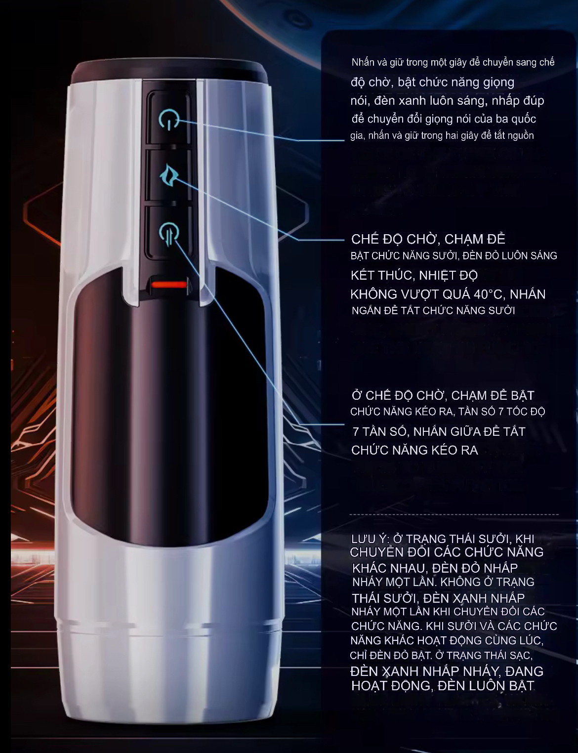 Đã là một sản phẩm của thời đại thì lại không thể thiếu những chức năng siêu khủng. Với khả năng rung, hút kẹp, thụt và sưởi ấm đã được tích hợp trên sản phẩm mới. Bạn không cần phải lăn tăn khi nên mua sản phẩm nào mà hãy chọn ngay Space Sex. Được trang bị thiết bị rung mạnh mẽ với nhiều chức năng khác nhau và hút kẹp sẽ tạo nên những màn sử dụng đặc sắc và nhiều cảm giác mới lạ cho người dùng.