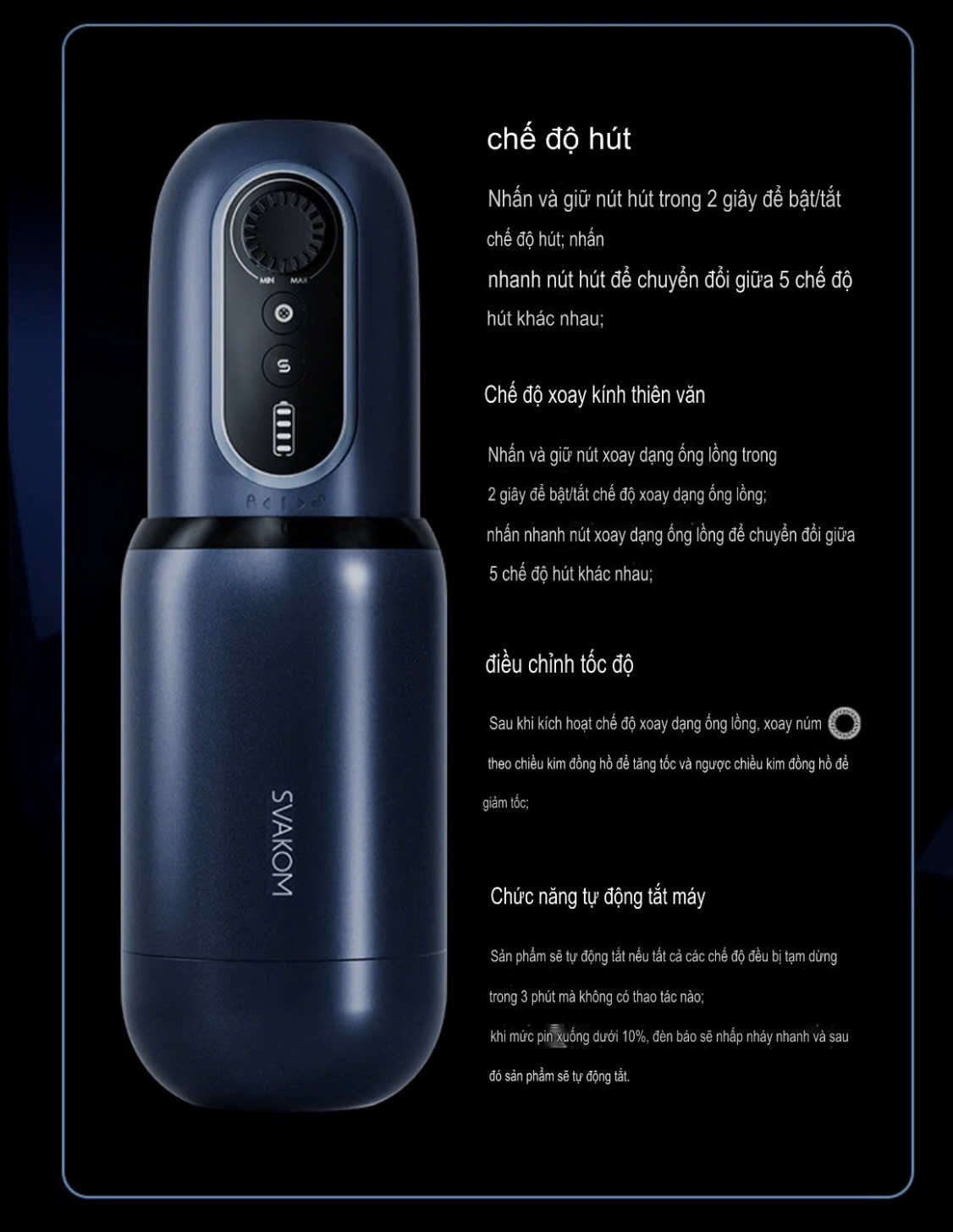 Ngay từ cái nhìn đầu tiên nhà thiết kế sản phẩm của Svakom đã cho ta thấy được một kiệt tác và là thiết kế mới nhất của nhà svakom nhìn bên ngoài như một quả tên lửa hạt nhân vô cùng thích mắt với ý nghĩa sức mạnh và uy lực của sản phẩm không kém cạnh gì với sức ảnh hưởng của tên lửa, mang trong mình là một động cơ khủng khiếp.