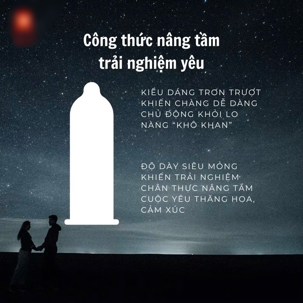 Độ mỏng được ví von là mỏng nhất từ trước tới giờ khi có thể đeo nhưng chẳng cảm nhận được rằng mình đang đeo vô cùng thoải mái và ôm sát dương vật, khi sử dụng trong quá trình quan hệ sẽ như đang chơi trần vô cùng mỏng nhưng độ dai thì không gì sánh bằng. Với size 52mm phù hợp cho dương tầm nhỏ - trung. Một hộp 10 cái vừa đủ cho một sản phẩm hoàn hảo. Với tính năng siêu mỏng và siêu nhiều gel đã đủ để hạ gục các nàng.