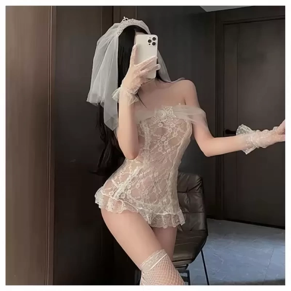 Với phần vai được chẻ xuống và được thêu phần vai choè ra tạo nên độ chắc chắn và quyến rũ cho bộ độ, phần eo được thiết kế dạng ôm nên sẽ tôn lên được cả ba vòng quyến rũ của các chị em, là bộ đồ chủ đạo cô dâu nên sẽ được làm tà váy nhỏ xinh để tránh vướng víu cho các chị em và cũng dễ dàng cho các anh em trong việc chủ động hơn với độ trong suốt có giới hạn càng làm tăng thêm phần thú vị cho một đêm nồng cháy hơn.