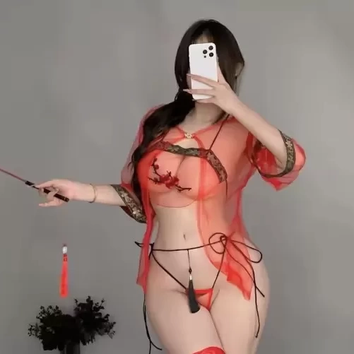 Với thiết kế được lấy cảm hứng từ những bộ y phục của người Việt ta, được đem ra để thiết kế với tông chủ đạo là màu đỏ với những đường viền hoa văn ngộ nghĩnh nhưng lại đem lại vẻ cuốn hút và quyền quý trên trang phục. Với phần áo được làm như áo yếm được làm trong suốt có thể nhìn nhấu bên trong và được trang trí cành hoa đào tượng trưng cho sắc đẹp như thể đang muốn che nhưng cũng muốn để các chàng được chiêm ngưỡng vẻ đẹp của các nàng. Phần thân dưới được thiết kế độc lạ và táo bạo với những sợi dây vô cùng cuốn hút là điểm nhấn và có sợi dây để che những gì cần che nhưng cũng không thể che nổi sự tò mò của các chàng.