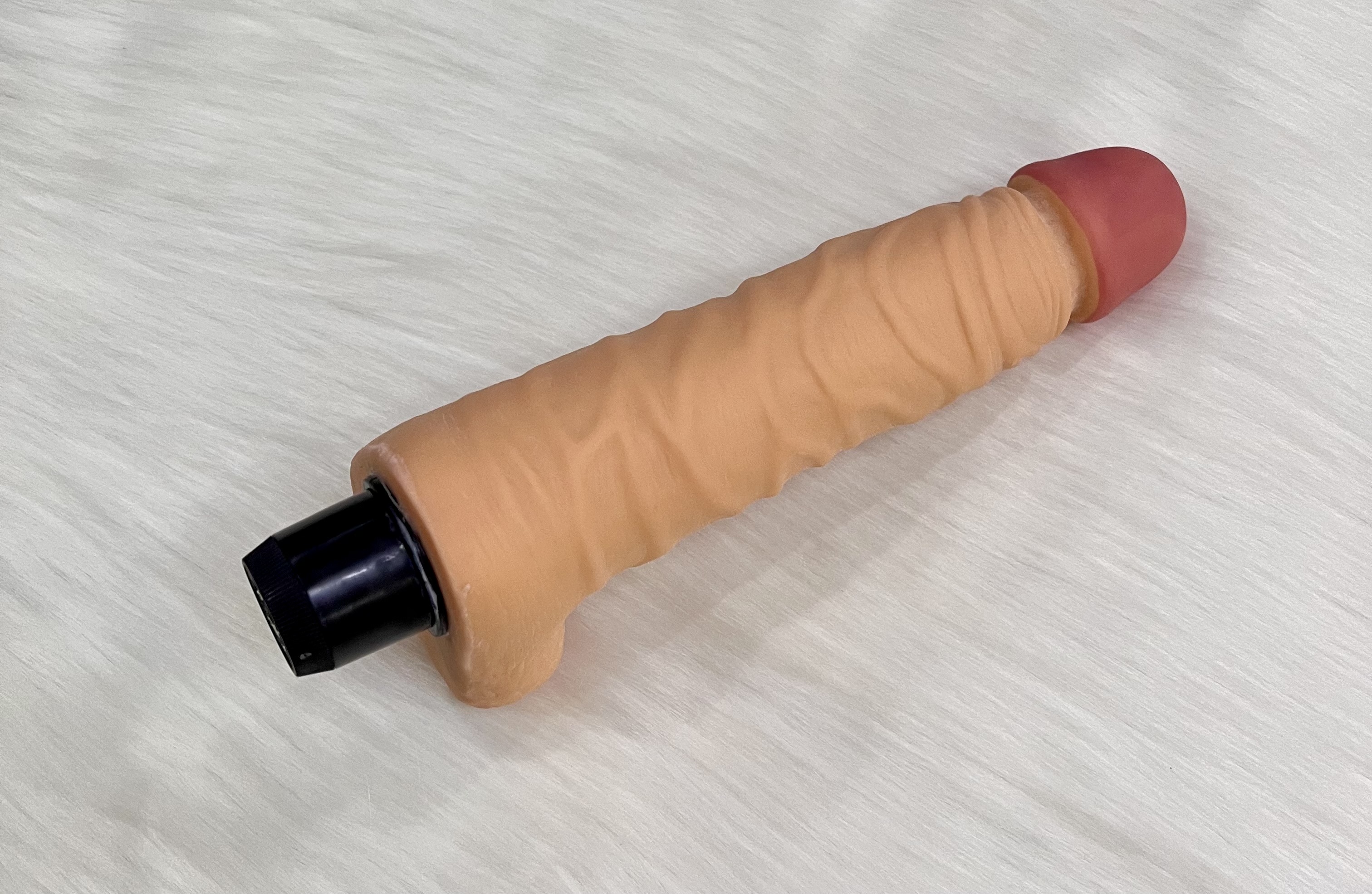 Dương vật giả được làm bằng chất liệu silicon mềm mại, có nhiều gân nổi bao quanh thân