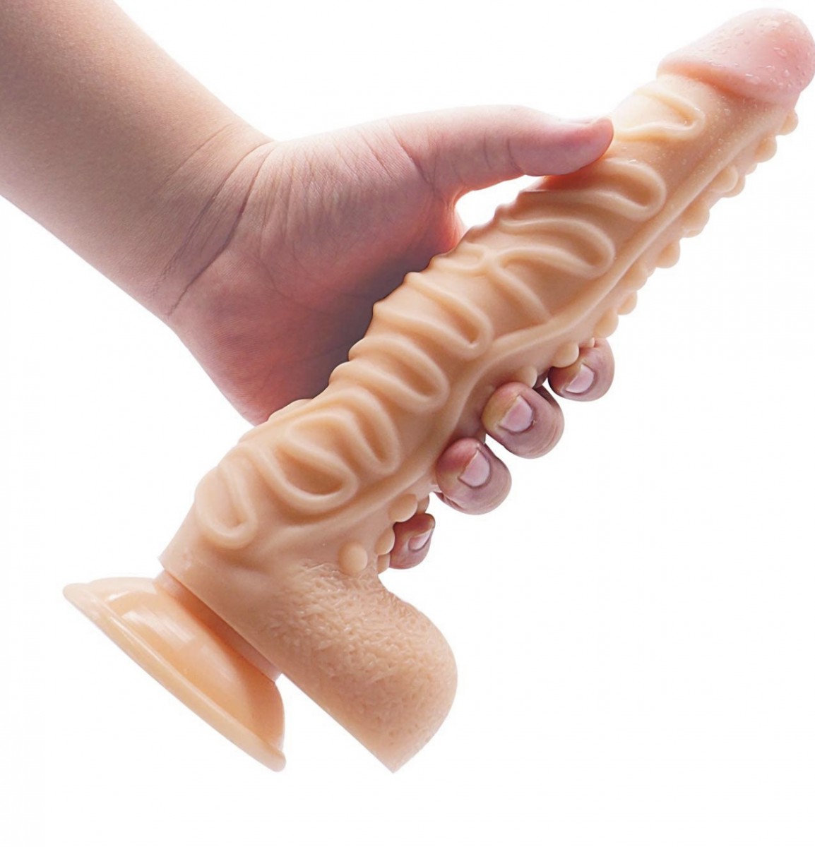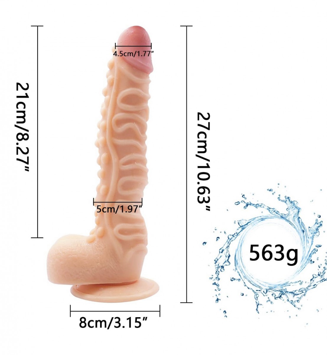 Dương vật giả có đế siêu khủng 10 inch thiết kế kiểu dáng đẹp, các chi tiết gân nổi mô tả giống y chang dương vật của nam giới, ngay khi chạm tới bạn sẽ có cảm giác thích thú và hưng phấn mạnh mẽ. Phần đầu dương vật có nhiều nếp nhăn chằng chịt, dọc thân là những gân nổi và chấm liti tạo kích thích và ma sát mạnh mẽ khi chạm vào âm đạo.