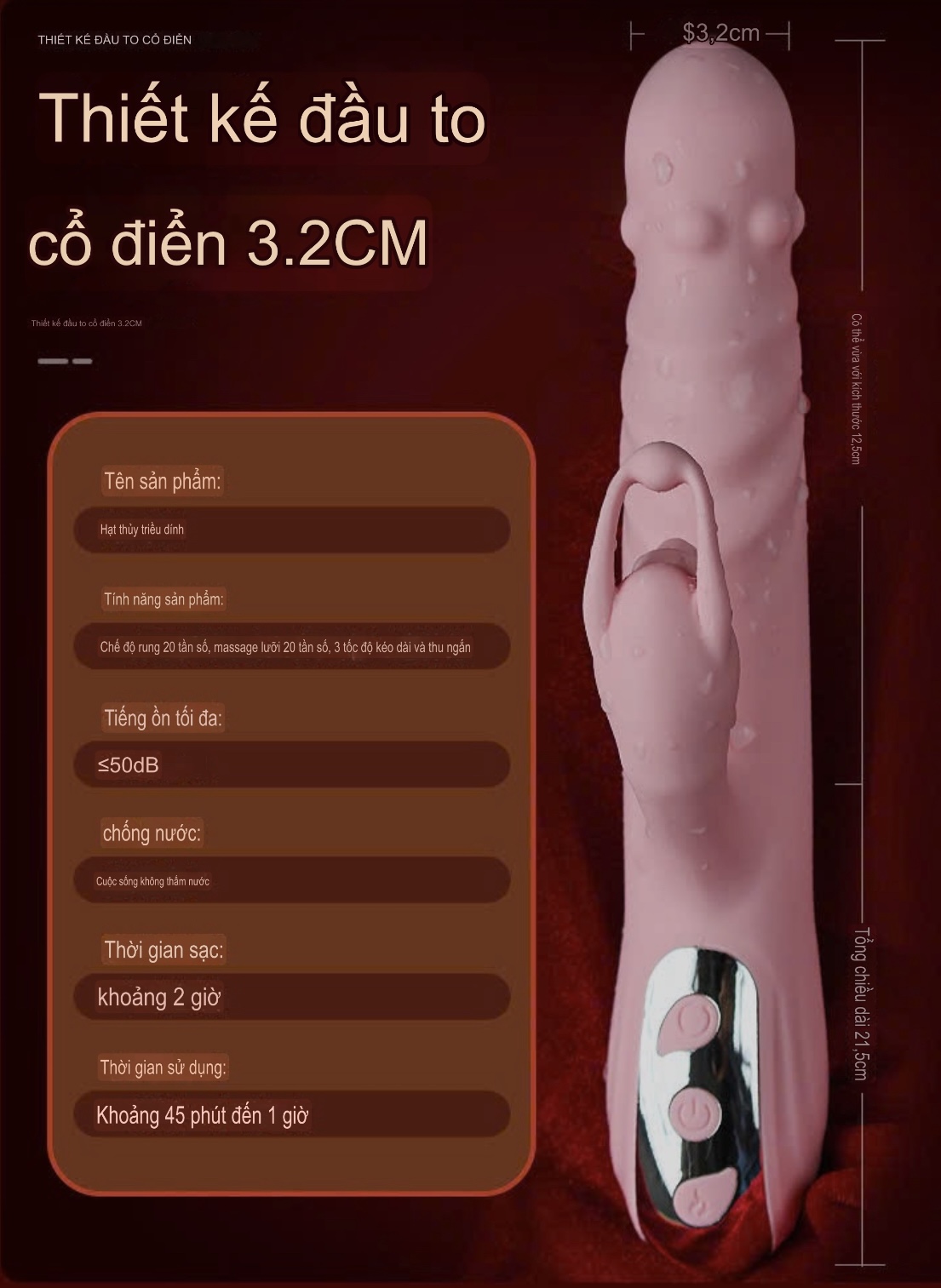 - Tính năng: kích thích điểm G, giải tỏa sinh lý cho chị em