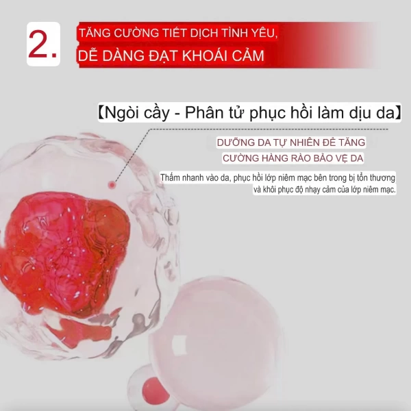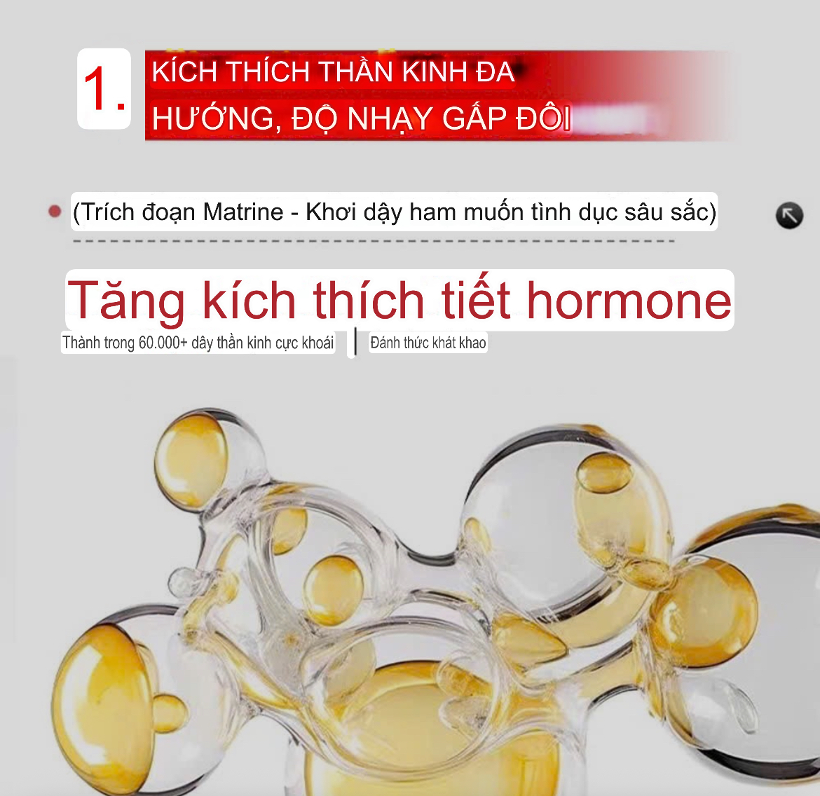 Sản phẩm giúp tăng cường và kích thích hormone lên cao để phục vụ cho nhu cầu kích dục của người dùng, thấm vào hơn 60.000 dây thần kinh cực khoái để đánh thức được dục vọng trong cơ thể đưa cuộc yêu lên cao trào hơn, kích thích hơn. Tăng độ nhạy cảm lên gấp đôi, nhà sản xuất muốn mang đến cảm giác thoải mái, kích thích và kì thú đến cho người dùng để từ từ tận hưởng những khoảng khắc thân mật bên cạnh người thương của mình. Mang đến không khí ấm cúng nhưng vô cùng sung sướng đến cho các chị em, giúp cho các anh thoải mái hơn trong việc phục vụ các chị em đến cực khoái.