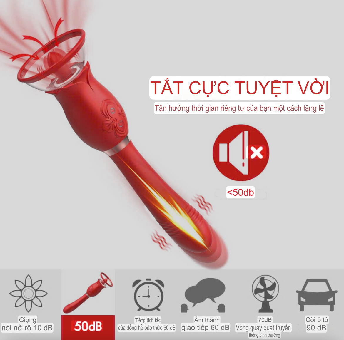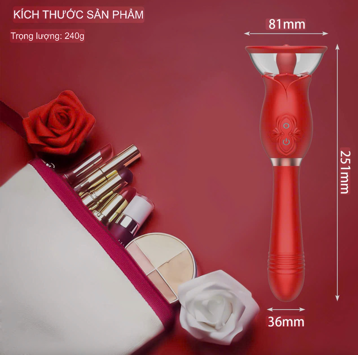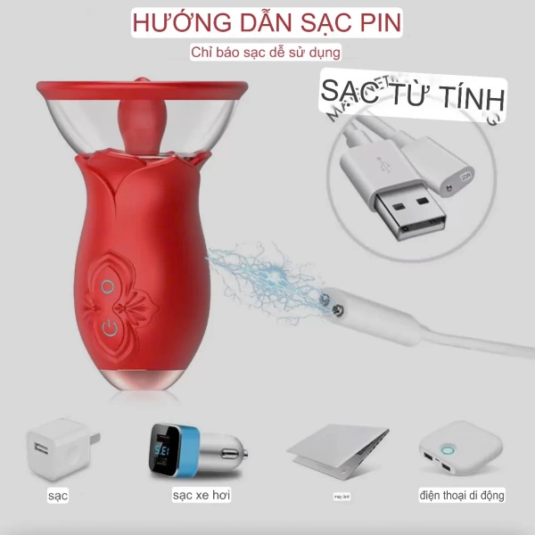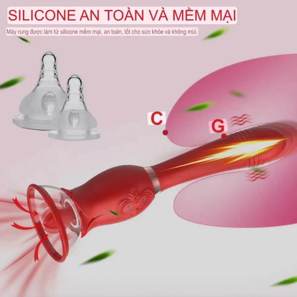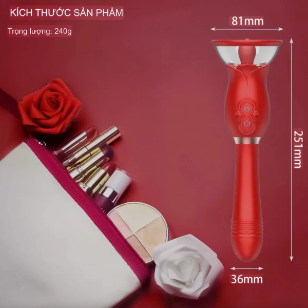 Sản phẩm được tích hợp đầu trên là úp ngực và đầu dưới được thiết kế dạng thụt và đều được trang bị chế độ rung mạnh mẽ của thời đại với phối màu đỏ rực bắt mắt càng làm nổi bật lên vẻ mạnh mẽ và quyền quý của sản phẩm. Hoạ tiết hoa hồng tôn lên vẻ sang trọng và quyến rũ cho sản phẩm, ẩn mình dưới lớp vỏ bọc đẹp lung linh là con mãnh thú đang chờ được khám phá với khả năng tuyệt vời dành cho những người ưa cảm giác mới lạ và thú vị.