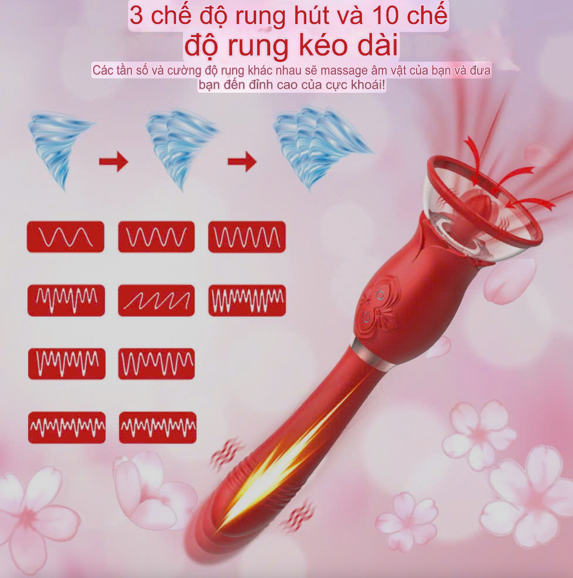 Chức năng Rung thụt 10 chế độ, 3 chế độ rung hút