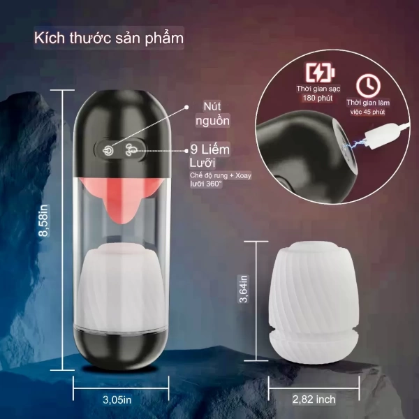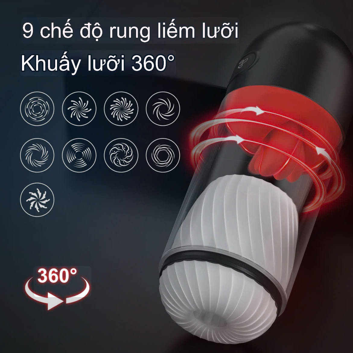 Với lớp trong được bọc silicon mềm mịn nhưng lại vô cùng mạnh mẽ vì được trang bị 9 chế độ hút, liếm siêu mạnh mẽ phần lưỡi có thể khuấy 360 độ tạo nên sức hấp dẫn mạnh mẽ cho sản phẩm. Bên cạnh đó còn được trang bị khả năng làm ấm và làm lạnh vô cùng tiện lợi tuỳ theo sở thich của người dùng để có thể điều chỉnh theo ý muốn của mình tạo nên những cảm giác vô cùng mới lạ và kích thích.