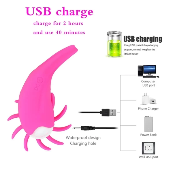 (Vòng rung lưỡi liếm CHI sử dụng pin sạc cổng USB vô cùng tiện lợi)